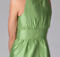 Ruffle around neck and at bottom hem. Built-in panel around waist, A-Line skirt. Back zip. 24" skirt with pockets. Shown in lime silk shantung.